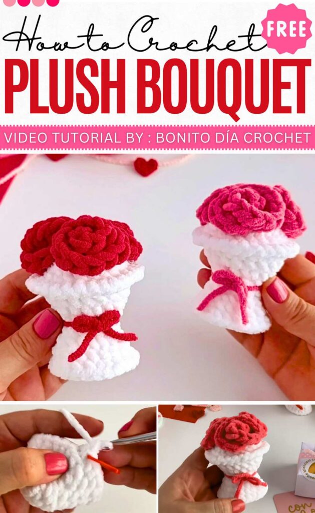 Learn to crochet a mini rose bouquet plushie, a perfect, quick gift for Valentine’s Day and anniversaries. You can either crochet this in red or pink. There will be a round bouquet base and a layer of petals for the rose.