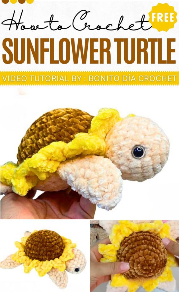 A turtle with a themed shell is a really irresistible crochet gift idea. For spring and summer, you can crochet this cute big Sunflower plushie turtle using super bulky chenille yarn. The project is designed to be quick and easy, taking less than 30 minutes to complete.