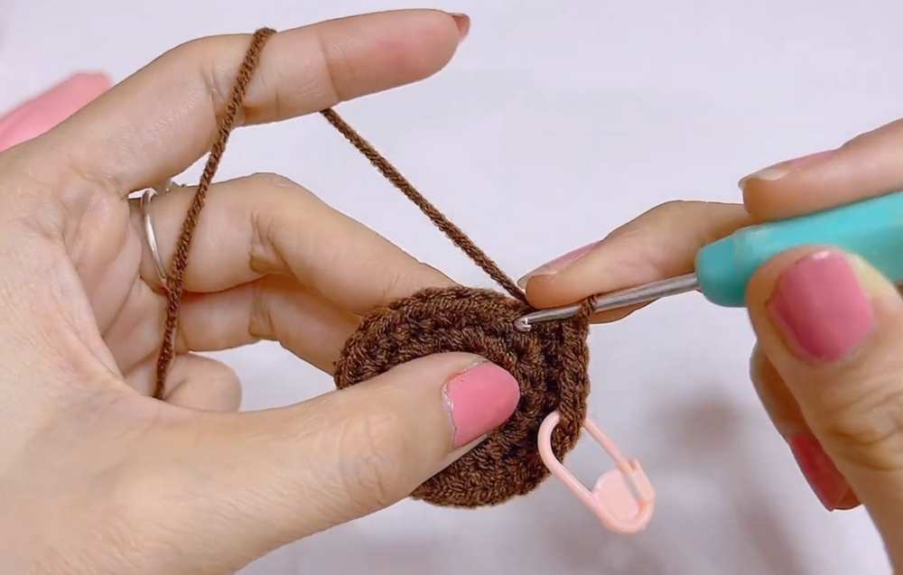 - Joining the Centers: Place the two brown discs with their right sides facing outwards. Align the stitches of both pieces. Insert the crochet hook through the corresponding stitches of both the front and back discs to begin the petal layer.