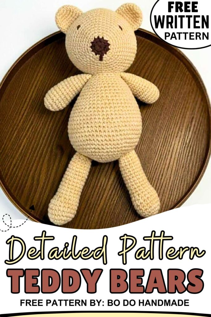 Crochet an easy, large teddy bear toy doll for toddlers with a free written pattern that moms can follow easily. This amigurumi teddy will be worked in many parts, so beginners can easily make it. The face of the bear is also basic, with funny sleeping eyes and a simple muzzle.