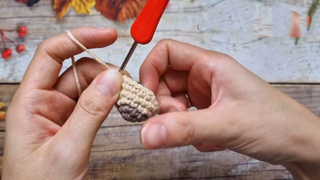 R22–End: Repeat cycle (1 dec round, 2 dc rounds) until 24 dc remain. Stuff and sew to head.