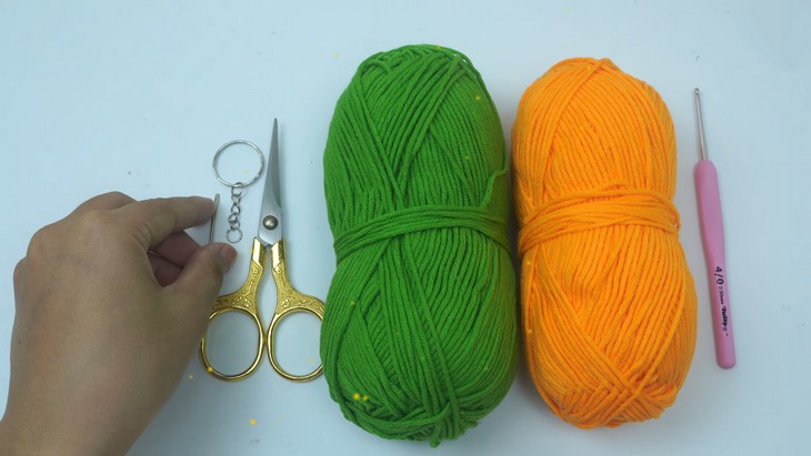 About the designer: the designer behind first pumpkin project is @lisa_crochet – most of her tutorials are about using the yarn scraps to crochet practical and popular projects, including keychains shaped like sunflowers, four-leaf clovers, butterflies, and much more. In addition to these small accessories, she also has tutorials for making classic granny squares and simple amigurumi like bunnies and a crochet frog. However, she mostly focuses on crochet motifs and flatwork. But I will call her an all-rounder! She also has a whole collection of pumpkin projects that is worth checking!
