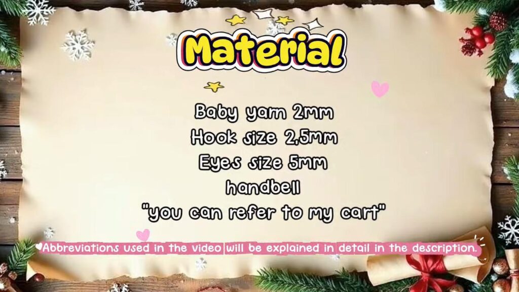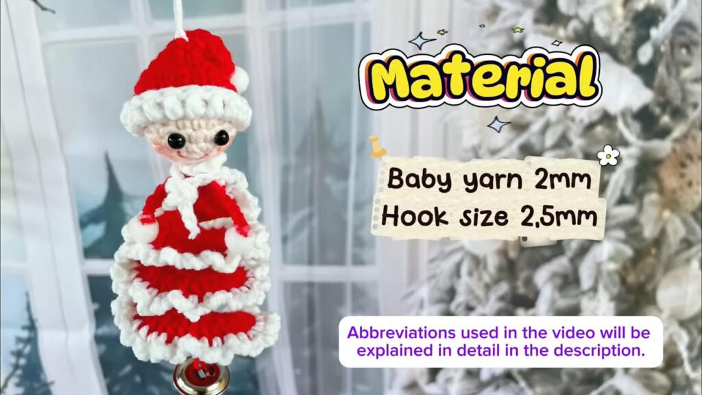 The tutor has asked to gather the following materials for crocheting this Christmas girl spinner in the same dimensions: