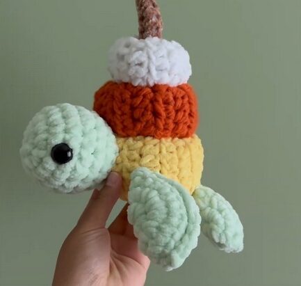 How to Crochet Three Pumpkins Turtle Plushie with Candy Corn Colors