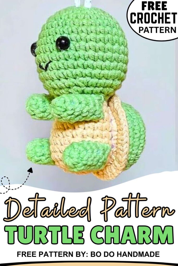 Here is the free and complete written pattern for crocheting a sitting turtle amigurumi keychain, which is easy and quick. The keychain also has a small crochet string for use as a bag charm. This will be a little turtle doll and crocheted in many small pieces. But everything is easy and quick, so try it for sure for kids.