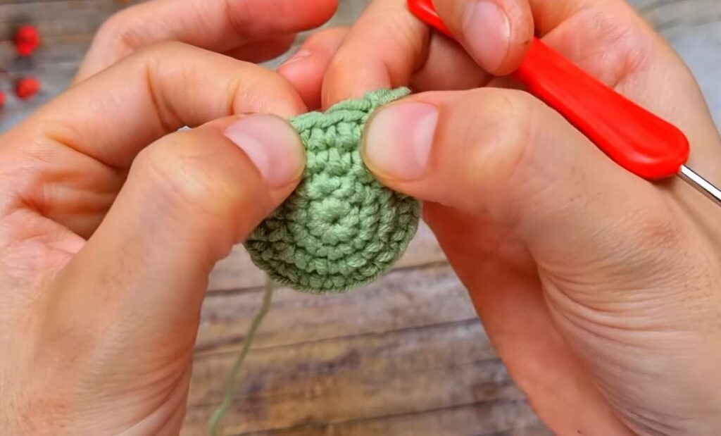R4: (2 sc, inc) x 6 (24)
