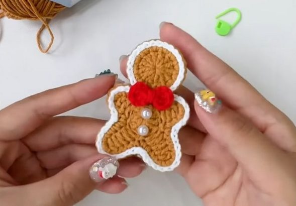 Gingerbread is gonna be the first subject in the 10-minute Christmas project series from Lilyrosycrafts! In this stitch-by-stitch tutorial, you’ll learn how to crochet an easy two-sided gingerbread man applique that looks so adorable with a simple white edging. This mini gingerbread looks appealing on both sides and will retain its shape well. The one side also features beads as buttons and a tiny bow tie crocheted for absolute beginners. You can use this as an applique for book sleeves, Christmas gifts, or buntings by crocheting a single-sided piece, or as a two-sided Christmas ornament.
