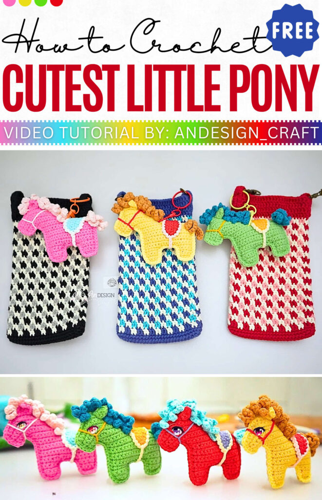 You can also skip the eyes or use the kawaii safety eyes. These little pony amigurumi will make your shoulder bag look extra colorful. So, try crocheting the complete set.