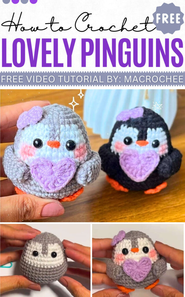 Whether it’s a couple or friendship gifting, crochet these cute Love Penguin amigurumi following the two tutorials. The idea is so irresistible: you will crochet a mini chubby and kawaii penguin holding an easy-to-crochet heart.