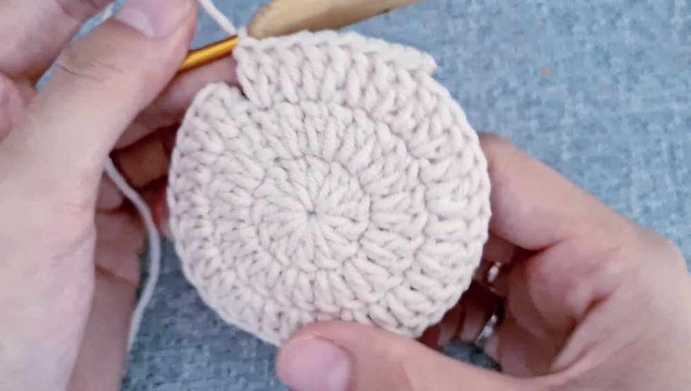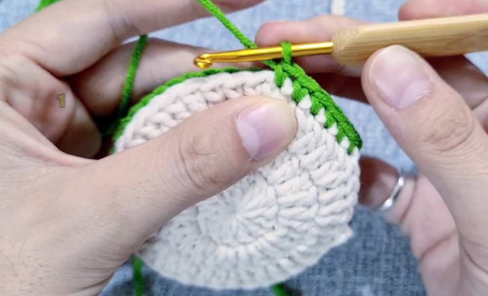 - Continue dc for 31 stitches around the bottom edge.