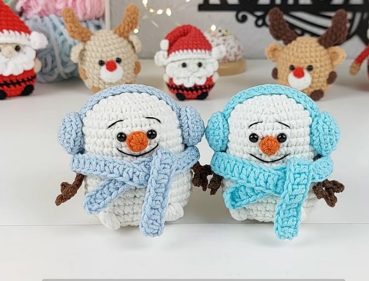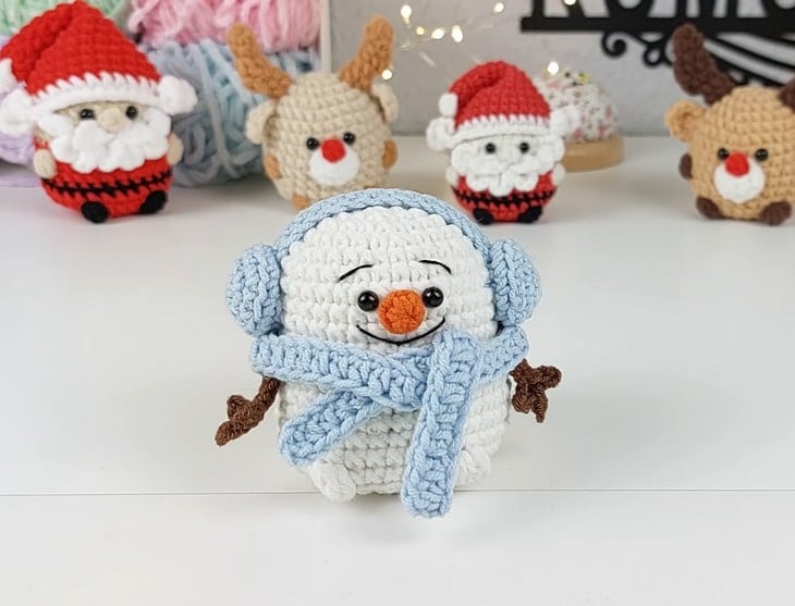 Tips before getting started: You can follow through with the previous crochet Santa hat tutorial if going to crochet for Christmas. For the scarf it will also be a lovely addition to faux fur in the ends. For a detailed look, crochet the headphone part of the headphones with color changes. I would also recommend crocheting this snowman using the thin plush yarn, like in the chubby reminder amigurumi.