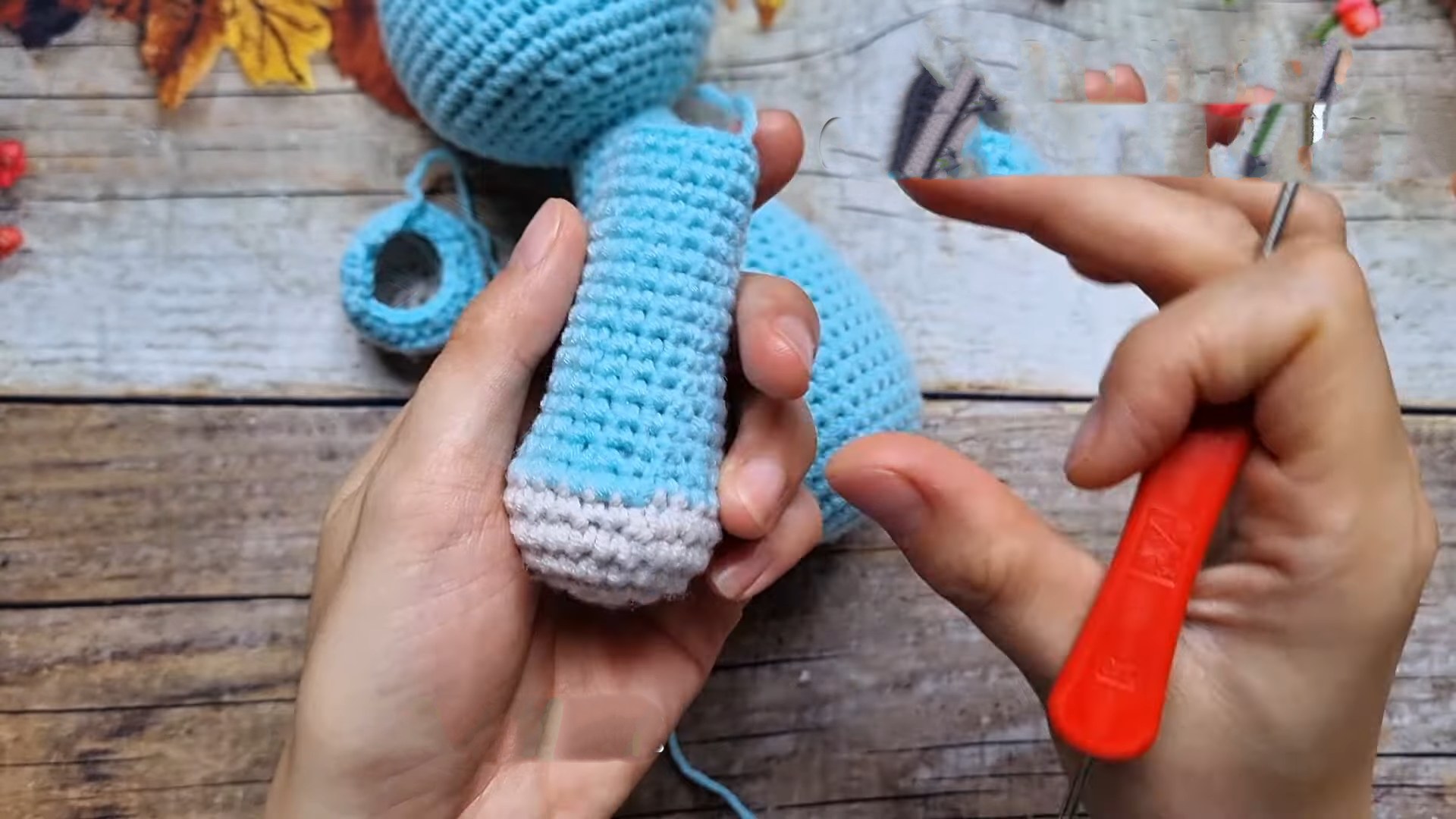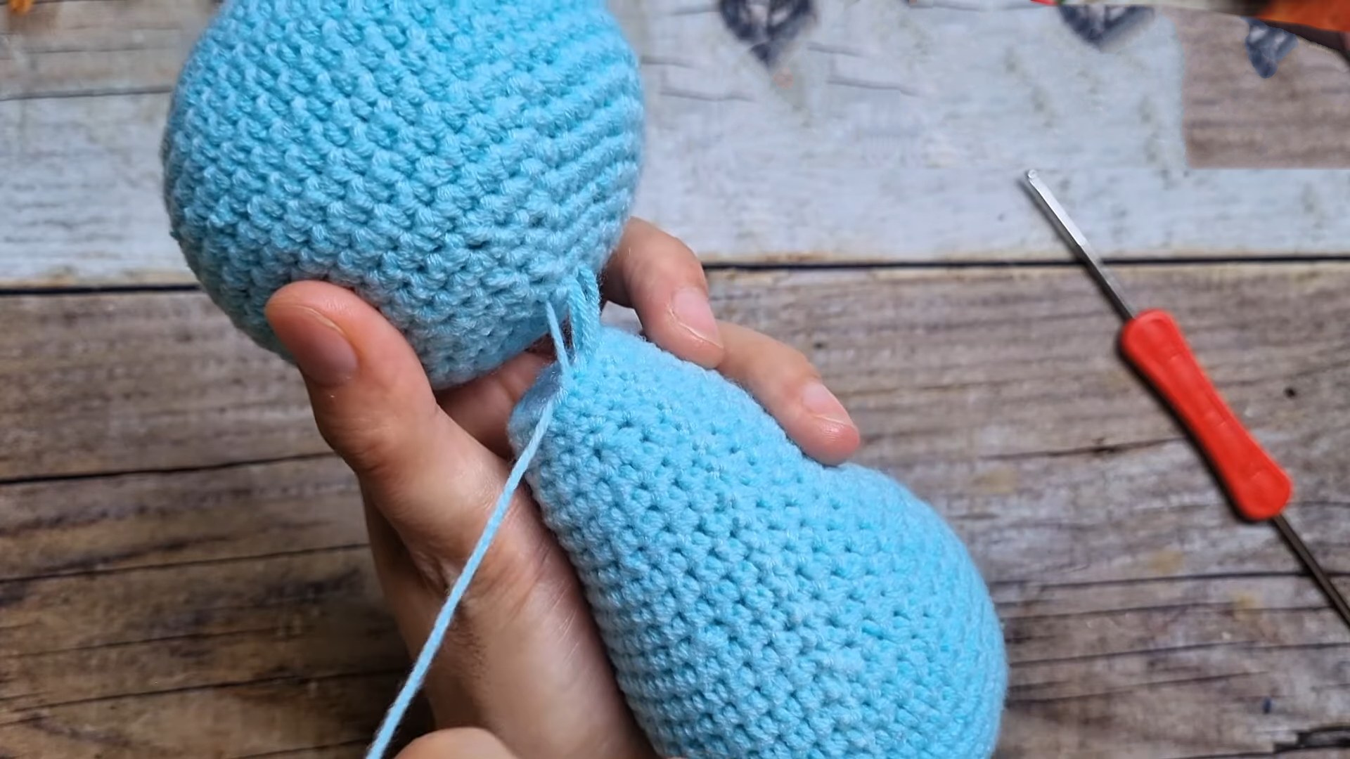 Sew Legs to the bottom of Body (approx R5-R10 of body).