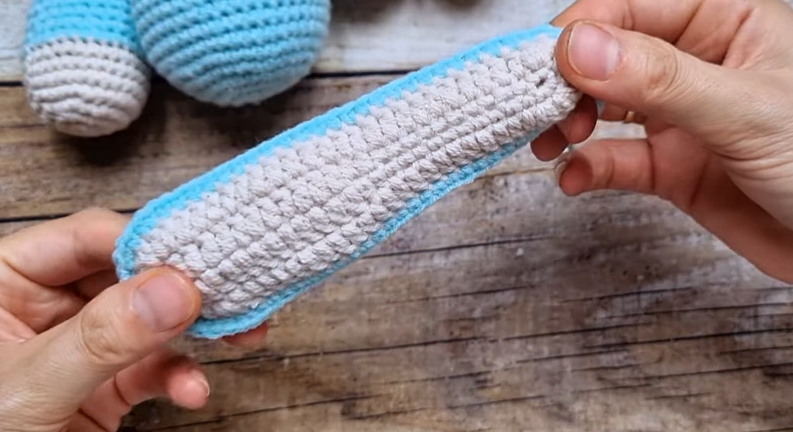The colors are unique, as we will be using the blue and the beige. I love especially the muzzle of the doll and the eyes. You can finish it within two hours or so.