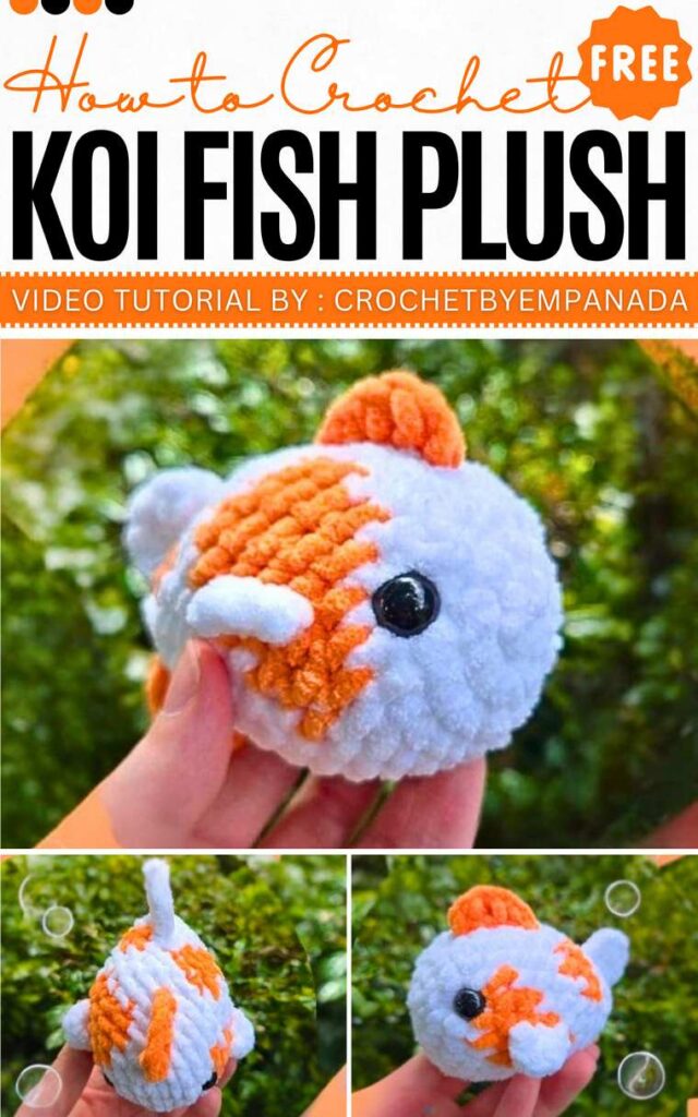 Here is how to crochet a Japanese baby Koi Fish plushie that has a lot of color changes. So it’s not recommended for absolute beginners unless you know how to color change. You will end up with an actually easy decorative Koi fish, which looks so cute in white and orange.