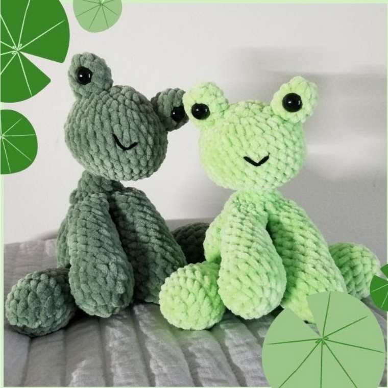 Very similar to the sleepy plush, this crochet frog plushie with a chubby face and bulging eyes is a must-have. In fact, the body of the plush is about the same as that of the dog plush.