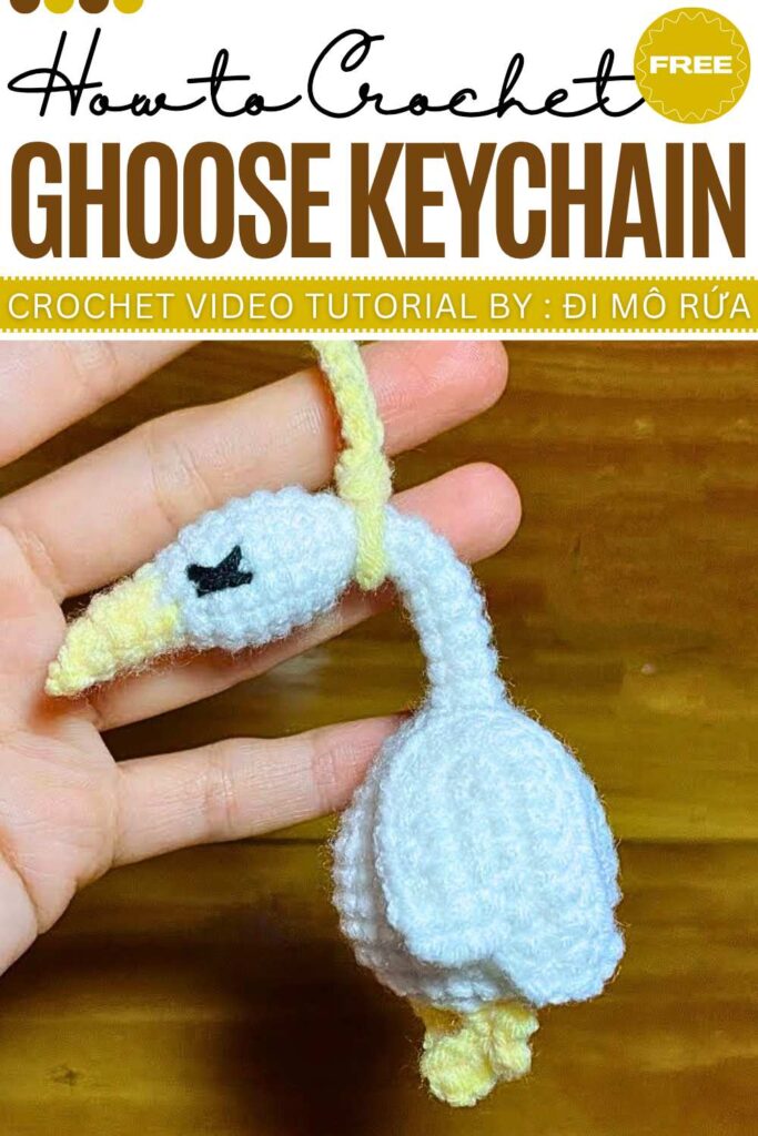 For your simple summer tote bag crochet this little amigurumi. The Goose is a quirky crochet project, perfect for making a charming keychain or a small decorative buddy. It shows a long, slender neck and a round body, giving it a classic and slightly humorous “clueless” look.