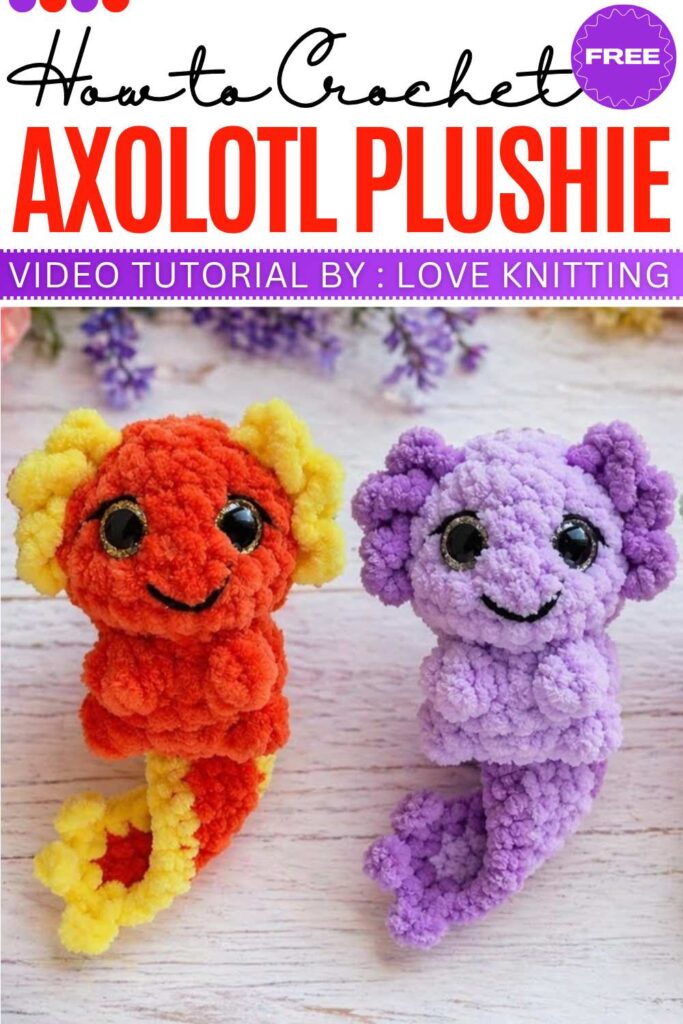 This plush axolotl is made using soft chenille yarn, giving it a very squishy and professional finish. It’s worked as one main piece from the bottom up, so there is very little sewing involved.