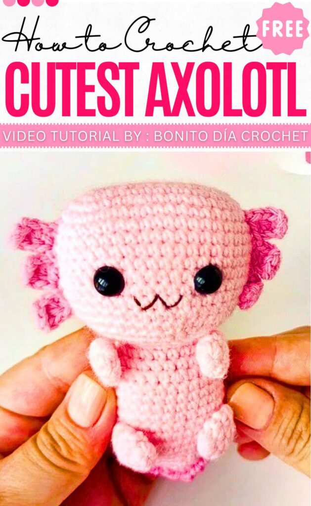With this tutorial, crochet a smiling baby axolotl Amigurumi measuring about 10 cm. This baby axolotl has small legs and arms and is made to be a lying amigurumi doll. You can crochet it in an hour with the help of quick, step-by-step instructions.