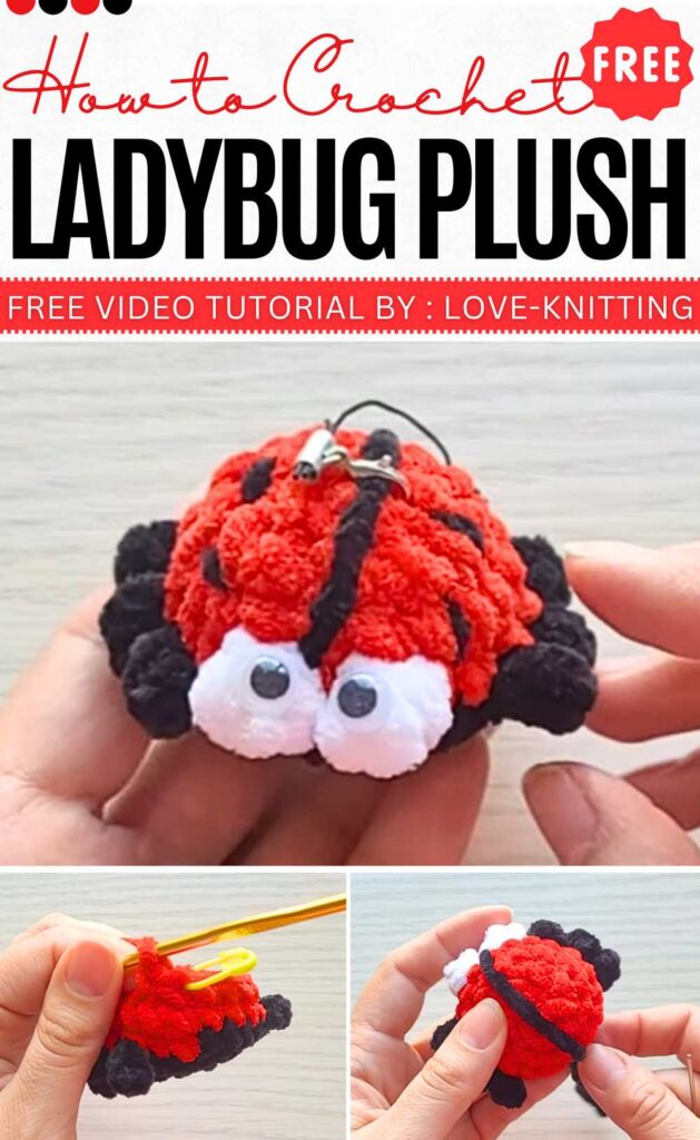Next is the miniature ladybug plushie with plastic googly eyes, using the spider base taught in the last tutorial. The finished Ladybug plush will measure about 5 centimeters. There are some color changes involved that will make the wing centreline and the black spots.