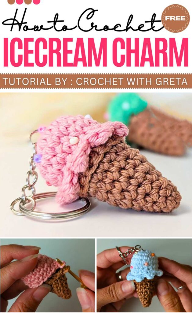 Then two regular ice cream keychains, but they are special in the respect that they are colorful and spring-ready! Before the extension of this list, we shall end with an ice cream cone and a popsicle lip balm holder. These amigurumi patterns will make the best bag charms, gifts, and summer keychains!