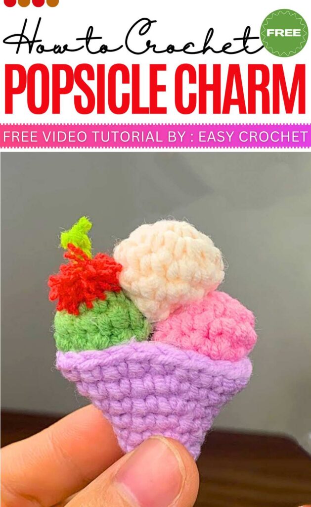 This project is all about making a fun popsicle-style ice cream cone that’s surprisingly quick to finish. It’s a great project for beginners because the shapes are very simple, and you can stack different “flavors” (yarn colors) to make a tall, delicious-looking treat!
