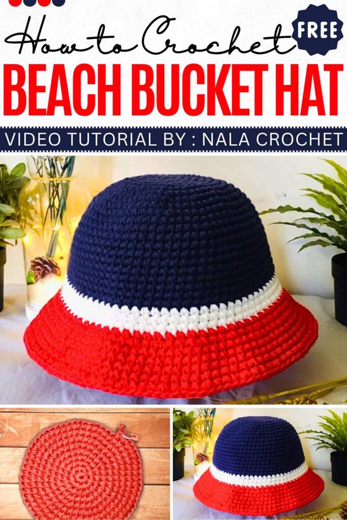 Tailored for a larger fit, this project is ideal for those who prefer a relaxed, oversized headpiece with a sporty edge. The color-blocked stripes in navy, red, and white provide an athletic aesthetic that is both functional and visually striking. Use a 5mm hook and double-strand yarn for a sturdy, large fit. Crochet 13 rows of crown increases before starting the stripes. After the stripes, add two rows of the base color to keep the brim from sagging and the pattern centered.