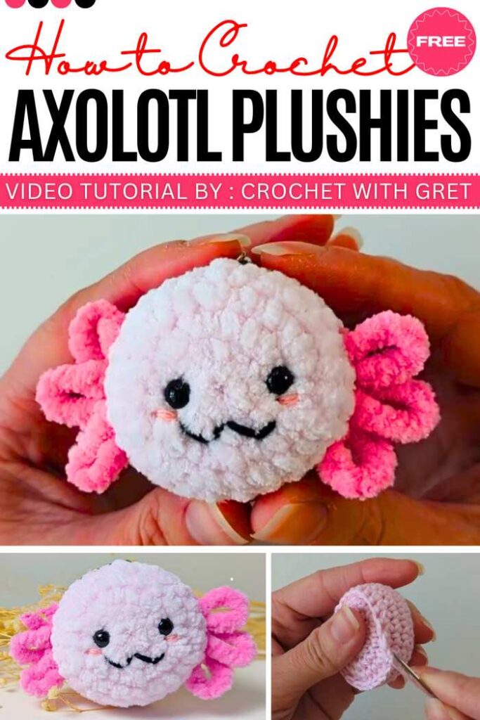 The No-Sew Axolotl Keychain is a super small and quick project that results in a round, squishy face with long, floppy gills. It is designed to be made in two flat pieces that are joined together, making it perfect for beginners who want a cute result without complex shaping.